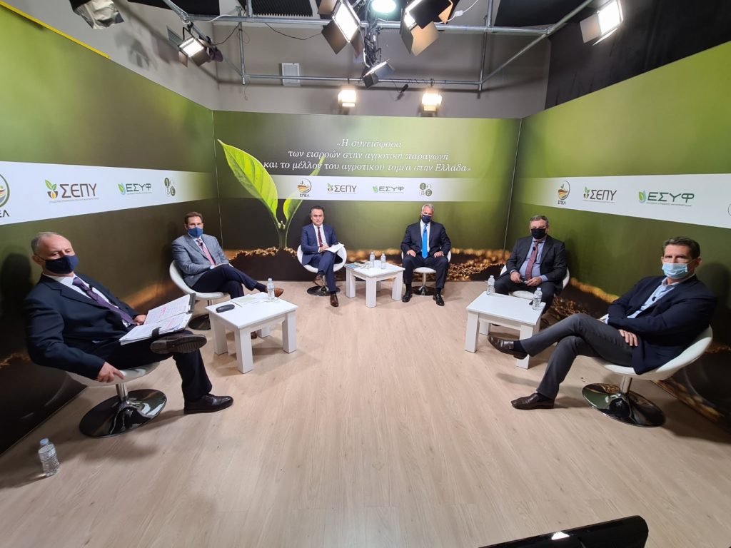 Στη συζήτηση συμμετείχε ο Υπουργός Αγροτικής Ανάπτυξης και Τροφίμων, κύριος Μάκης Βορίδης. Από πλευράς της βιομηχανίας των αγροτικών εφοδίων συμμετείχαν οι Πρόεδροι των τριών Συνδέσμων κκ. Βάσος Ευθυμιάδης (ΕΣΥΦ), Γιάννης Βεβελάκης (ΣΠΕΛ) και Θύμης Ευθυμιάδης (ΣΕΠΥ).