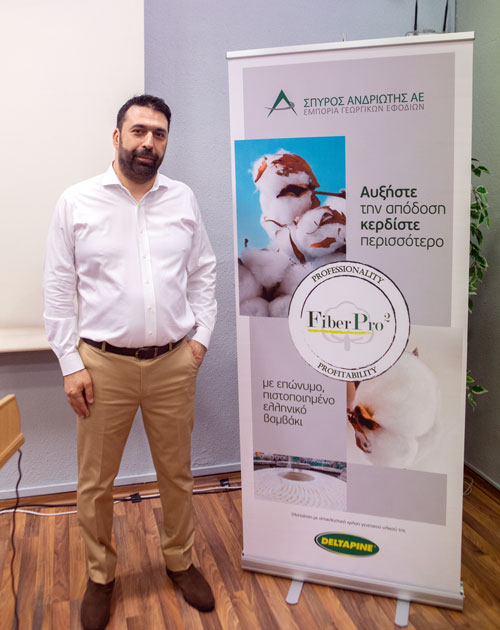 Γεμάτη από βαμβακοπαραγωγούς και εκκοκκιστές από όλη τη χώρα ήταν η αίθουσα «Ολυμπιάς», όπου παρουσιάστηκε το πρόγραμμα πιστοποιημένου πολλαπλασιαστικού υλικού στο βαμβάκι «FiberPro2», από την «Σπύρος Ανδριώτης ΑΕ». Ο Βασίλης Ανδριώτης, διευθύνων σύμβουλος της εταιρείας, πραγματοποίησε μια μεστή παρουσίαση για την πορεία και τα οφέλη του πρωτοποριακού προγράμματος, που ξεκίνησε το 2017 και απογειώθηκε το 2019, ενώ φέτος θα ακολουθήσει νέα κατεύθυνση.