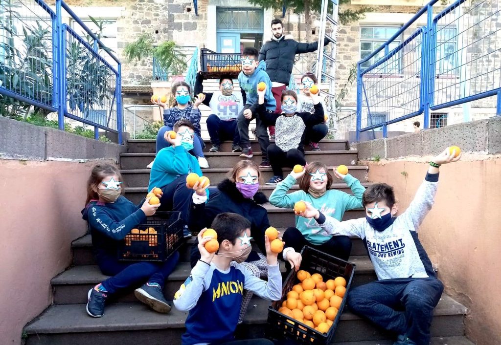 Η συγκομιδή των πορτοκαλιών της σχολικής αυλής στη Λουτρόπολη Λέσβου