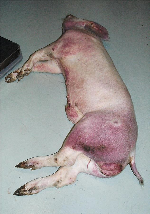 Τα συμπτώματα της νόσου στους χοίρους είναι υψηλός πυρετός, ανορεξία, κατάπτωση, ξαφνικός θάνατος με ελάχιστα συμπτώματα να προηγούνται, έμετος, αιμορραγία από τη μύτη ή το έντερο, διάρροια, ερυθρός ή μαύρος χρωματισμός στο δέρμα των αυτιών, του ρύγχους, της ουράς, στα άκρα, στην κοιλιακή χώρα και το στήθος, οίδημα και ερυθρότητα στους οφθαλμούς, δυσκολία στην αναπνοή και βήχας, αποβολές και πρόωροι τοκετοί, λιποβαρή χοιρίδια. Τα στελέχη του ιού με υψηλή μολυσματικότητα είναι γενικά θανατηφόρα, με τη θνησιμότητα να αγγίζει το 100%.