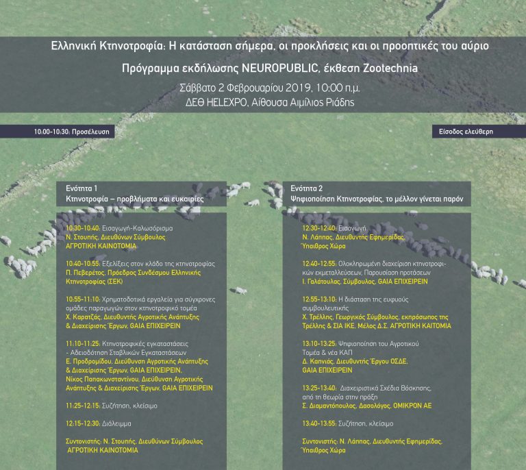 Το Σάββατο στις 10:00 η NEUROPUBLIC και η GAIA ΕΠΙΧΕΙΡΕΙΝ προσκαλούν τους επισκέπτες στην εκδήλωση που θα πραγματοποιηθεί στην Αίθουσα Αιμίλιος Ριάδης στο πλαίσιο της Ζootechnia με θέμα: