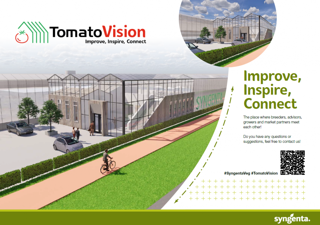 Τμήμα 1.500 m2 θα είναι επισκέψιμο για τους ενδιαφερόμενους από όλο τον κόσμο, όπου θα έχουν τη δυνατότητα να δουν από κοντά τα νέα υβρίδια και να κατανοήσουν εις βάθος τα μοναδικά χαρακτηριστικά της ανανεωμένης πλούσιας γκάμας τοματών της Syngenta ειδικά για υδροπονική καλλιέργεια. Το Tomato Vision θα λειτουργήσει επιπλέον σαν μια πλατφόρμα για να ενδυναμώσει και να συνδέσει περαιτέρω τα τμήματα έρευνας και ανάπτυξης με την αγορά. O Ruud Kaagman, επικεφαλής της Syngenta για την τομάτα σημειώνει: ‘’O στόχος μας είναι οι νέες ποικιλίες τομάτας που λανσάρουμε στην αγορά να καλύπτουν αληθινά τις ανάγκες του παραγωγού αλλά και του τελικού αποδέκτη του προϊόντος, του καταναλωτή! Ενισχύουμε με την επένδυση αυτή τη σχέση της ομάδας έρευνας με την αγορά ώστε οι καινοτόμες ποικιλίες που λανσάρουμε στην αγορά να δίνουν λύσεις, να συμβαδίζουν αλλά και να δημιουργούν νέες τάσεις στην παγκόσμια αγορά τομάτας!”