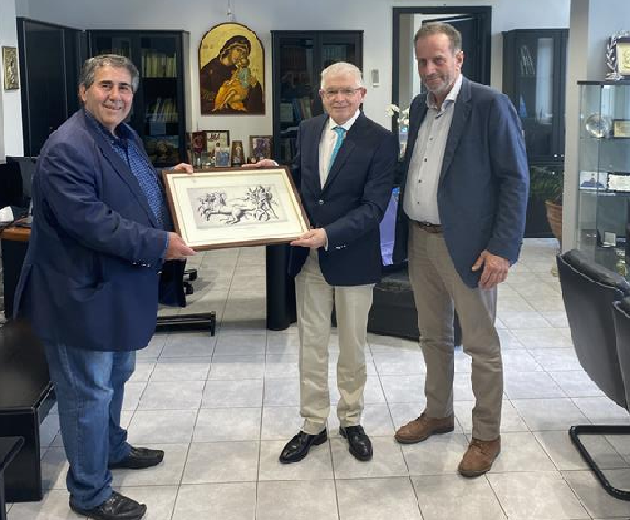 Ο Ιορδάνης Τζαμτζής αποχαιρέτισε τον Πρόεδρο του ΕΛΓΑ, με ένα συμβολικό δώρο, μία γκραβούρα με το Μέγα Αλέξανδρο σε άρμα.