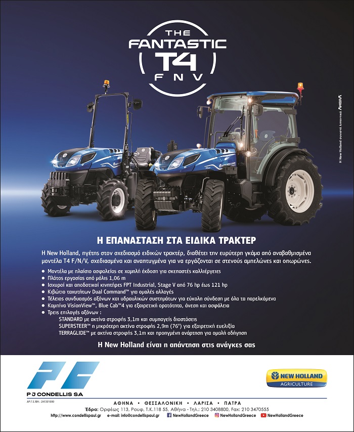 Η New Holland Agriculture εδραιώνει περαιτέρω την αδιαμφισβήτητη ηγετική της θέση στην κατηγορία των ειδικών τρακτέρ με την παρουσίαση της επαναστατικής καμπίνας VisionViewTM στη σειρά T4 F/N/V και του νέου, ισχυρότερου κινητήρα και συμπαγούς καπό, στη σειρά TK4.