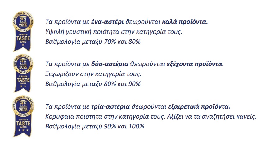 Μπορείτε να βρείτε τη λίστα με τα βραβευμένα προϊόντα για το 2025 στην ιστοσελίδα του International Taste Institute.