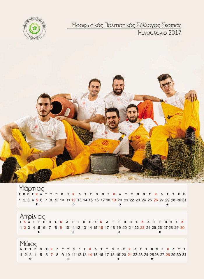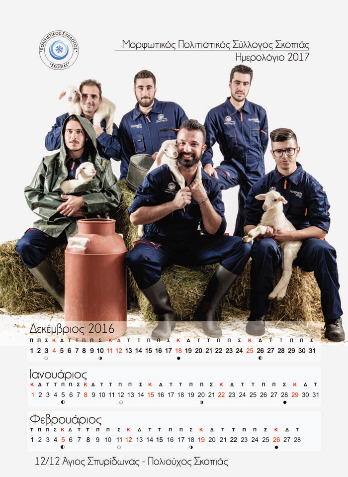 Οι έξι νέοι, αγρότες και κτηνοτρόφοι, ηλικίας 22-32 χρόνων αποφάσισαν να φωτογραφηθούν και να είναι οι ίδιοι το θέμα στο νέο ημερολόγιο του Πολιτιστικού Συλλόγου Σκοπιάς Φαρσάλων για το 2017.