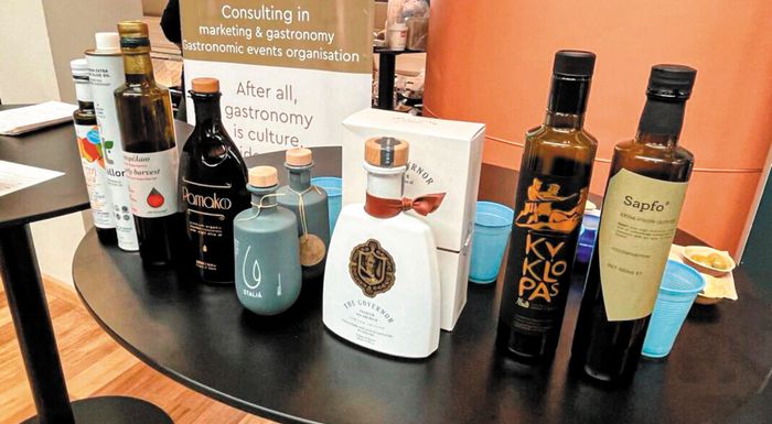 Ετικέτες και παραγωγοί, όπως οι αδελφοί Τσικούρη από τη Χαλκιδική, με το βραβευμένο βιολογικό τους αγουρέλαιο Thallon, ο Βιτσέντσος Κορνάρος με το εξαιρετικό παρθένο ΠΟΠ Σητείας Χρυσοπηγή, το σπάνιο κερκυραϊκό αφιλτράριστο ελαιόλαδο με την υψηλή συγκέντρωση πολυφαινολών The Governor, αλλά και παλιές ελληνικές ποικιλίες ελιών όπως η βιολογική –και διαφορετική, αφού έχει γλυκιά γεύση– Δαμασκηνοελιά από τη Θάσο και η ντόπια ποικιλία ελιάς από τη Λέσβο (σ.σ. Κολοβή ή Μυτιληνιά), ήταν λίγα μόνο από τα εκλεκτά προϊόντα που τέθηκαν σε γευστική δοκιμή ώστε να ξεχωρίσουν οι αρωματικές νότες ή τα περίπλοκα, άλλες φορές, αρώματα που αναδύονται από κάθε φιάλη του πολύτιμου υγρού, οι υφές και τα χρώματά τους.