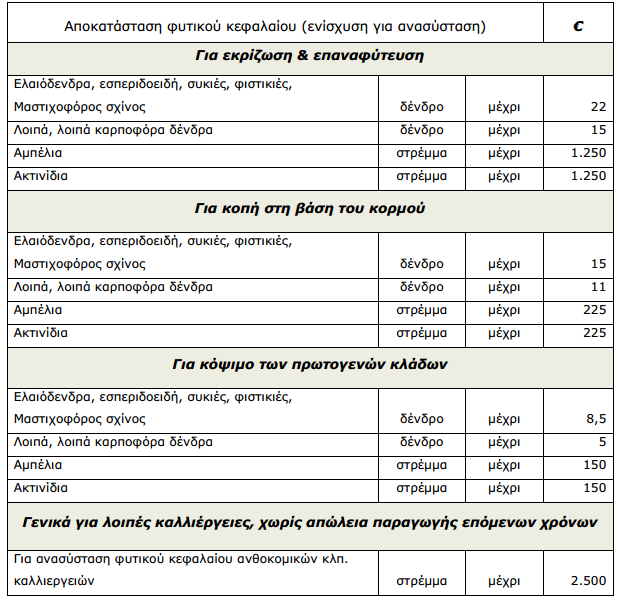 - Απώλεια εισοδήματος λόγω ανασύστασης φυτικού κεφαλαίου (συμπληρωματική ενίσχυση).