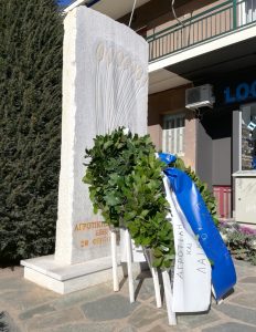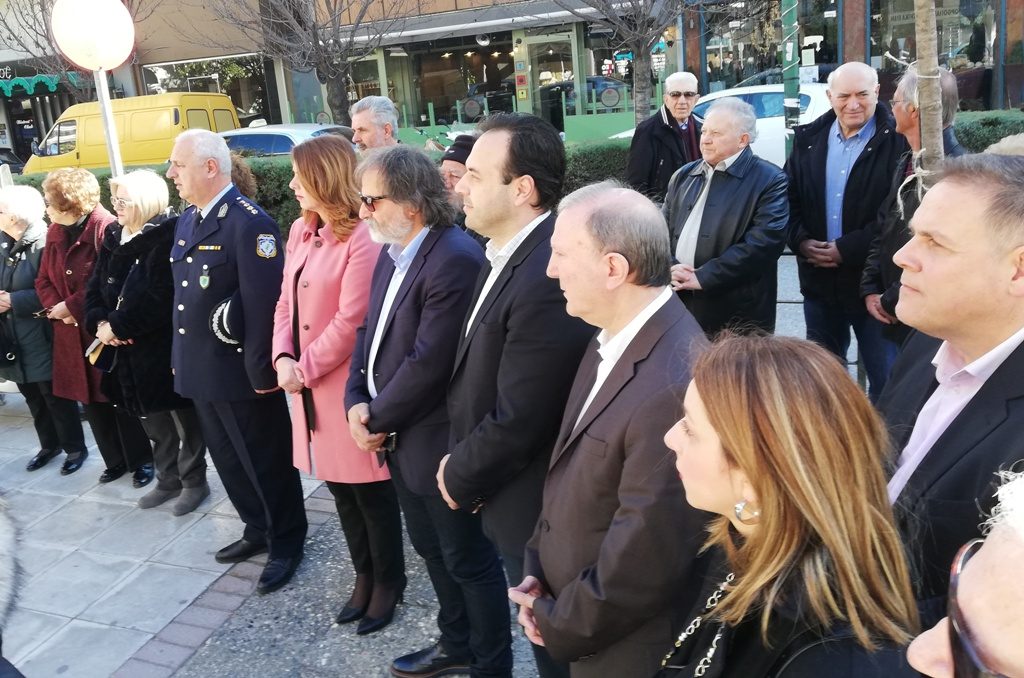 Ακολούθησε η κατάθεση στεφάνων, με πρώτο τον Δήμαρχο Τρικκαίων και πρόεδρο της ΚΕΔ, Δημήτρη Παπαστεργίου. Παρούσης της βουλευτή κ. Κατερίνας Παπακώστα, ακολούθησαν, ο θεματικός αντιπεριφερειάρχης κ. Ντ. Μπάρδας, ο βουλευτής Σάκης Παπαδόπουλος εκ μέρους του ΣΥΡΙΖΑ Τρικάλων (παρούσα και η τ. βουλευτίνα κ. Παναγιώτα Δριτσέλη) και εκ μέρους της Πρωτοβουλίας για τον εορτασμό της εξέγερσης ο ναύαρχος ε.α. κ. Νίκος Γκόγκος, ο οποίος απηύθυνε και έναν σύντομο χαιρετισμό. Επίσης παρέστησαν, ο αντιδήμαρχος Τρικκαίων κ. Α. Αναστασίου, οι τ. βουλευτές κ.κ. Δριτσέλη και Σιμορέλης και ο τ. πρόεδρος του Δημοτικού Συμβουλίου Τρικκαίων κ. Μιχ. Λάππας. Στο τέλος της εκδήλωσης η Δημοτική Φιλαρμονική Τρικάλων παιάνισε τον Εθνικό Υμνο.