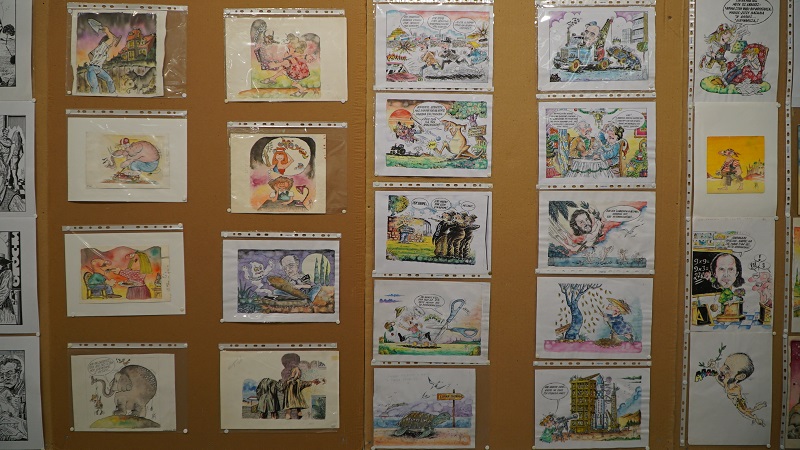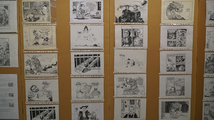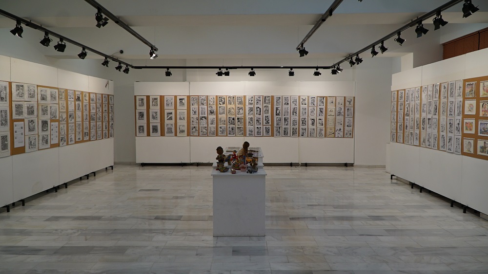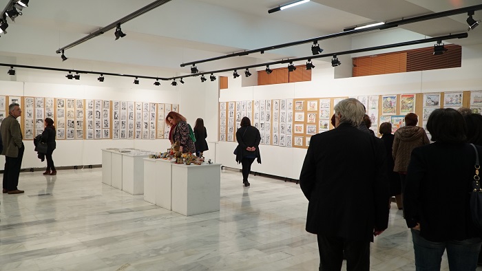 Μετά την εκδήλωση πραγματοποιήθηκαν τα εγκαίνια έκθεσης με έργα του τιμώμενου σκιτσογράφου και ποιητή. Η διάρκεια της έκθεσης θα είναι από τις 20 έως 26 Μαρτίου 2017 και οι ώρες λειτουργίας 18:00 έως 21:00, στο Πολιτιστικό Κέντρο “Μελίνα Μερκούρη”.