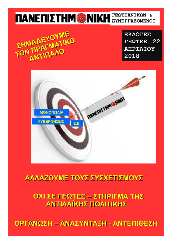 Η άνοδος της “Πανεπιστημονικής” ενισχύει τα εμπόδια στην αντιλαϊκή λειτουργία του ΓΕΩΤΕΕ, τη διεκδίκηση από καλύτερες θέσεις σύγχρονων αιτημάτων που ανταποκρίνονται στις ανάγκες των εργαζομενων , αυτοαπασχολουμενων ανεργων Γεωτεχνικων.