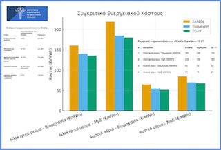 Σύμφωνα με την Eurostat, το ενεργειακό κόστος των ελληνικών ΜμΕ είναι 15-20% υψηλότερο από τον μ.ο. της ΕΕ, μειώνοντας την ανταγωνιστικότητα των ελληνικών προϊόντων στις εξαγωγές. Επίσης, σύμφωνα με την ΤτΕ, το υψηλό ενεργειακό κόστος μετακυλίεται στις τελικές τιμές αγαθών και, μάλιστα, το 1/3 της αύξησης των τιμών τροφίμων έχει προκληθεί από τα ενεργειακά κόστη. Ανά κλάδο, το μερίδιο του ενεργειακού κόστους στο συνολικό λειτουργικό κόστος, καθώς η επιβάρυνση των ελληνικών επιχειρήσεων έναντι των χωρών της ΕΕ-27 έχουν μεγάλη απόκλιση. Συγκεκριμένα, στο λειτουργικό κόστος του εμπορίου το ενεργειακό μερίδιο κυμαίνεται 8-10% και επιβαρύνεται με επιπλέον +10-12%, στη μεταποίηση 12-15% και +15-18%, στην ενεργοβόρα βιομηχανία 25-35% και +18-22%, στον τουρισμό και στην εστίαση 20-25% και +15-20% και, τέλος, στις υπηρεσίες 6-8% και +10-12%, αντίστοιχα.