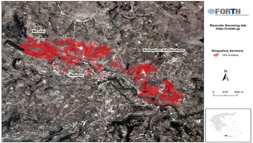 Στην χαρτογράφηση των καμένων εκτάσεων στο Μάτι της Αττικής και στις Βρύσες Αποκορώνου Χανίων, προχώρησαν οι επιστήμονες του Εργαστηρίου Τηλεπισκόπησης και Εφαρμογών σε Αστικό και Φυσικό Περιβάλλον του Ινστιτούτου Υπολογιστικών Μαθηματικών του Ιδρύματος ΙΤΕ. «Έχουμε πρόσβαση σε μια σειρά δορυφόρων οι οποίοι καθημερινά μας δίνουν δεδομένα και έχουμε τη δυνατότητα να παρακολουθούμε την αποτύπωση διαφόρων γεγονότων και καταστάσεων στα οικοσυστήματα της χώρας μας.