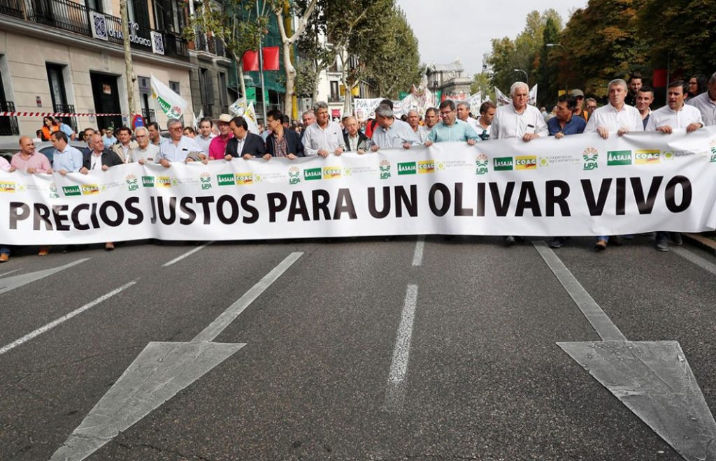 Οι διοργανωτές της διαδήλωσης, όπως η ASAJA, η COAG και η UPA, διεκδικούν από την κυβέρνηση να αυξήσει τις επενδύσεις της σε παραδοσιακούς ελαιώνες, να αλλάξει τους κανόνες αυτορρύθμισης στο πλαίσιο της μελλοντικής ΚΑΠ της ΕΕ αλλά και να διαπραγματευτούν με τις ΗΠΑ για την εξαίρεση του ελαιολάδου από τη λίστα αντιποίνων.