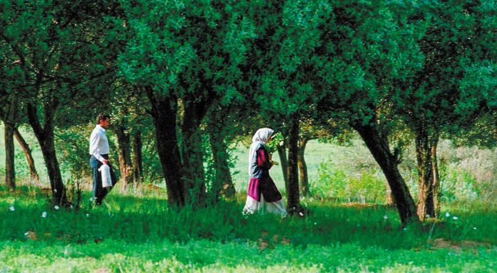 Τέλος, σε αυτή την ταινία εγκαινιάζεται το θέμα του χαρακτηριστικού γυμνού λόφου που βλέπουμε να διαχωρίζει τα δύο χωριά της τριλογίας. Τον διασχίζει ένα ανηφορικό χωμάτινο μονοπάτι με έντονα ζιγκ-ζαγκ, ενώ στην κορυφή δεσπόζει ένα μοναχικό ελαιόδεντρο, ανάμεσα στα ξερόχορτα. Αυτός ο κοινός παρονομαστής, με τις γεωμετρικά οξείες γωνίες του μονοπατιού που ανεβοκατεβαίνουν οι ήρωες και στις τρεις ταινίες, παραπέμπει με έναν τρόπο στις επίσης απότομες ζυμώσεις και τις κατακλυσμιαίες αλλαγές από τις οποίες διέρχονται οι ζωές των πρωταγωνιστών και τον τρόπο με τον οποίο διαπλάθονται οι προσωπικότητές τους.