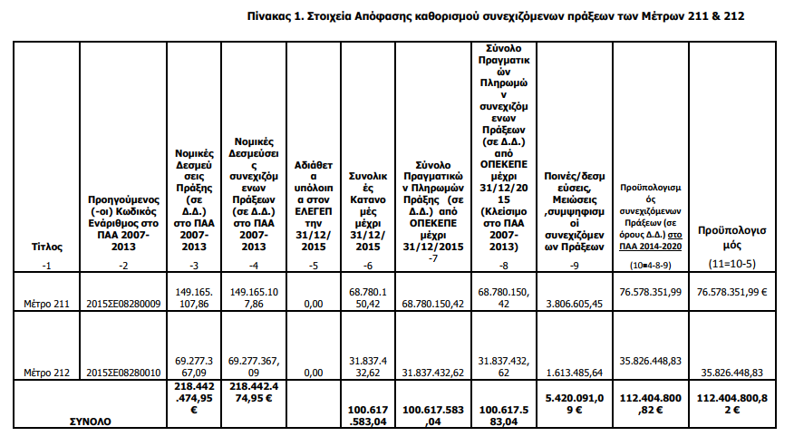 Σύμφωνα με όσα αναφέρει η απόφαση που δημοσιεύθηκε στον διαδικτυακό τόπο Διαύγεια αποφασίζεται η συνέχιση των πράξεων των Μέτρων 211(2015ΣΕ08280009) και 212 (2015ΣΕ08280010) του ΠΑΑ 2007 – 2013 στο Μέτρο 13 του ΠΑΑ 2014 – 2020, συνολικού προϋπολογισµού στο ΠΑΑ 2014-2020 και στο Π∆Ε 112.404.800,82 ευρώ.
