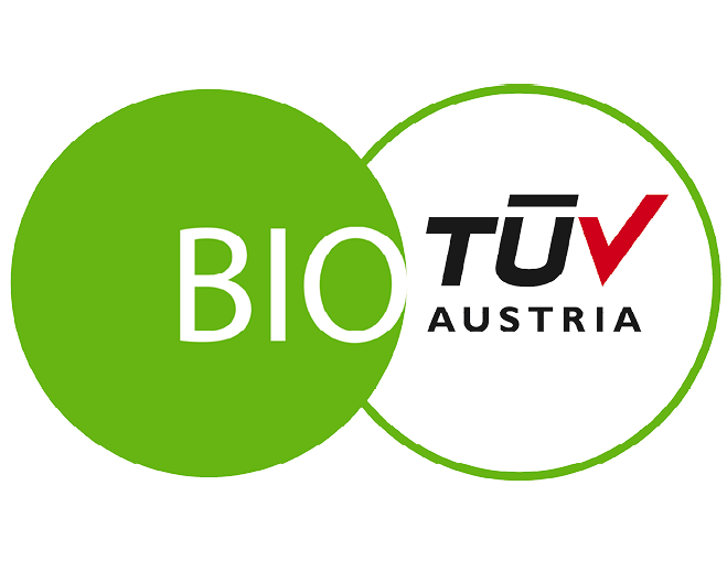 Το λογότυπο του ευρωπαϊκού κανονισμού για τα βιολογικά προϊόντα σε συνδυασμό με τη σήμανση TÜV AUSTRIA: