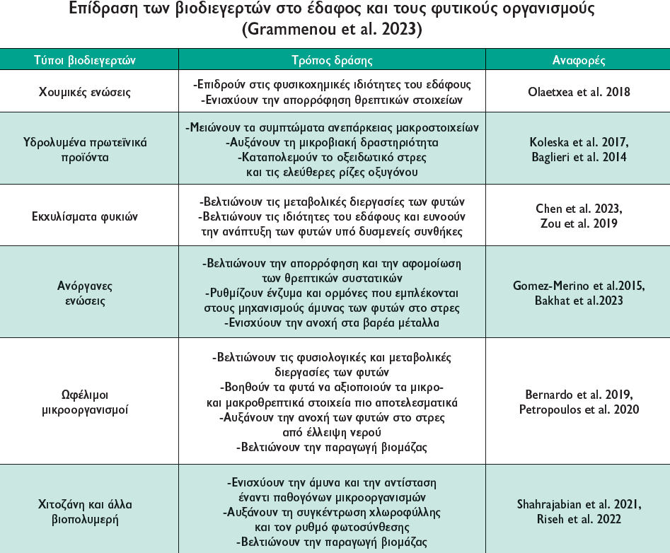 Συνεπώς, η γνώση του εδάφους είναι απαραίτητη πριν από την εφαρμογή βιοδιεγερτών για την επίτευξη της μέγιστης αποτελεσματικότητας της δράσης τους.