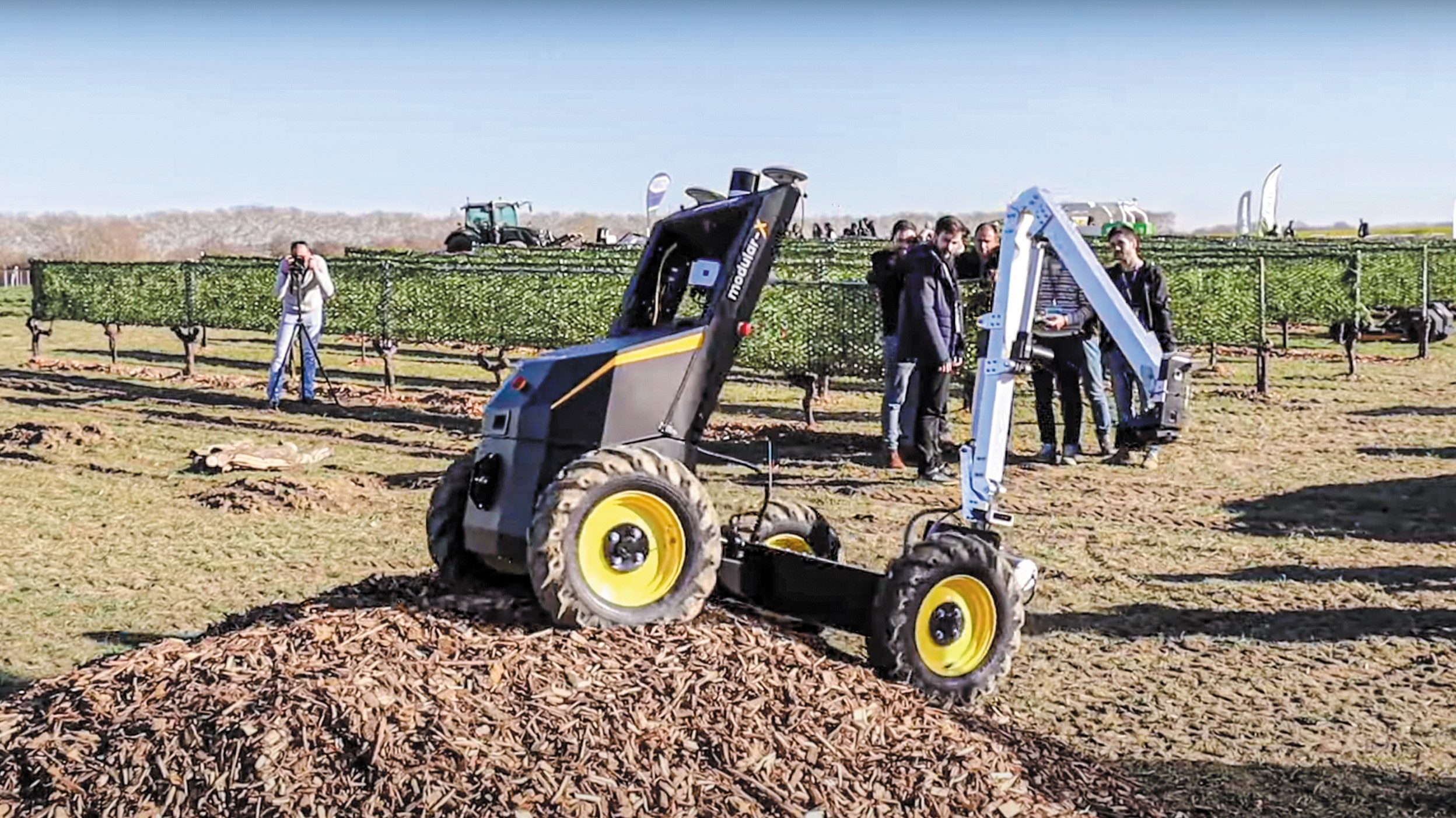 Αυτό το αγροτικό ρομπότ έχει την αρχιτεκτονική ενός αρθρωτού ελκυστήρα, με βάρος στο μπροστινό μέρος και σημείο πρόσδεσης για ρυμουλκούμενα εργαλεία στο πίσω μέρος. Αυτό του δίνει καλή πρόσφυση σε πλαγιές και ογκώδη εδάφη. Η καθοδήγηση RTK εξασφαλίζει ακριβή τροχιά. Επιπλέον, αν χρειαστεί, μια δεύτερη συσκευή αναλαμβάνει την καθοδήγηση του εργαλείου, με δίσκους διεύθυνσης αγκυρωμένους στο έδαφος. Το είδαμε και σε προηγούμενες εκδόσεις της FIRA, αλλά τώρα λειτουργεί και επικοινωνεί με έξυπνο εξοπλισμό για μηχανικό έλεγχο των ζιζανίων μέσω ενός καινοτόμου πρωτοκόλλου επικοινωνίας.