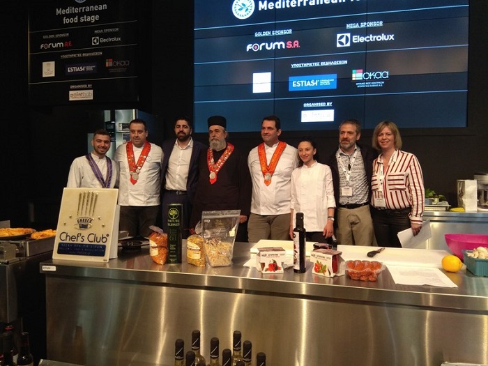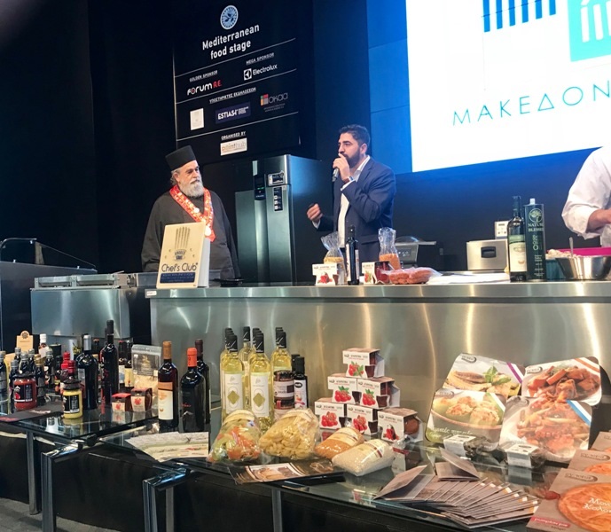 Στην εκδήλωση για τη μακεδονική κουζίνα, που φιλοξενήθηκε στον ειδικά διαμορφωμένο χώρο του “Mediterranean Food Stage” και πραγματοποιήθηκε σε συνεργασία με τη Λέσχη Αρχιμαγείρων Βορείου Ελλάδος «Ολύμπιος Ζευς», ο πατέρας Επιφάνιος και το μέλος του Δ.Σ. της Λέσχης Αρχιμαγείρων Κωνσταντίνος Γεωργαντζάς με την ομάδα του, σύστησαν στους επισκέπτες της 5ης “FOOD EXPO” τη μακεδονική κουζίνα.