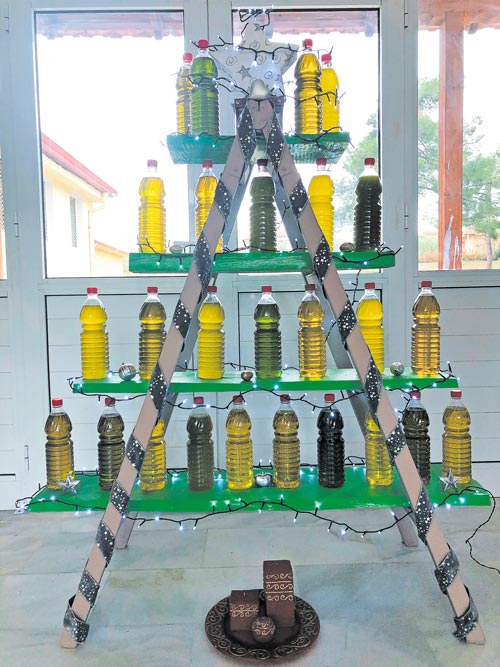 Χριστουγεννιάτικο δέντρο με στολίδια… γεμάτες φιάλες ελαιολάδου από τους μικρούς μαθητές