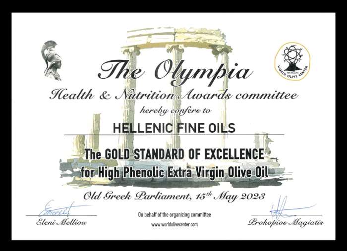 Χρυσό βραβείο για την “Ελληνικά Εκλεκτά Έλαια” στα Olympia Health & Nutrition Awards, για το προϊόν ENIGMA