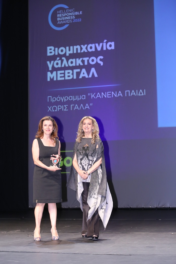 Ένα ξεχωριστό χρυσό βραβείο, που έκανε περήφανους τους ανθρώπους της, κέρδισε η ΜΕΒΓΑΛ, για το πρόγραμμα «Κανένα Παιδί Χωρίς Γάλα», στη διοργάνωση Responsible Business Awards της εταιρείας Boussias, την Τετάρτη 13/07/22.