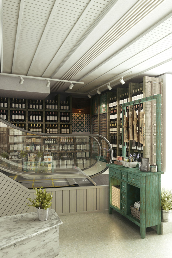 Σύμφωνα με τον σχεδιασμό, στο -1 επίπεδο θα δημιουργηθεί παντοπωλείο 2.000 ελληνικών προϊόντων με κοπή αλλαντικών και τυριών, αλλά και γωνιά με φρέσκα φρούτα και λαχανικά.
