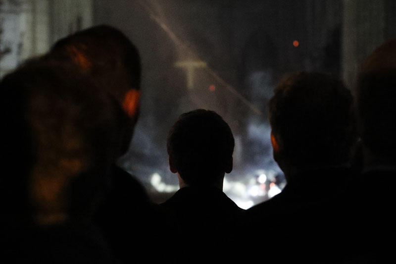 Αποσβολωμένοι, παριζιάνοι, τουρίστες – καθολικοί, άθεοι, μουσουλμάνοι -αδυνατούσαν να πάρουν τα μάτια τους από το θέαμα της πύρινης κόλασης στην Παναγία των Παρισίων, στο Ιλ ντε λα Σιτέ, στο κέντρο της γαλλικής πρωτεύουσας. Κάποιοι έψαλλαν το Χαίρε Μαρία, άλλοι προσεύχονταν γονατιστοί. Έβρεχε στάχτη.
