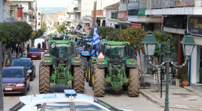 Με την συμμετοχή 100 τρακτέρ και αγροτικών μηχανημάτων πραγματοποιήθηκε χθες στα Φάρσαλα αγροτικό συλλαλητήριο, στο πλαίσιο των αγροτικών κοινοποιήσεων από αγρότες των Φαρσάλων και της Καρδίτσας που συμμετέχουν στο μπλόκο του Ε-65.