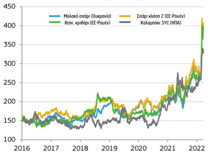 Σε κάθε περίπτωση, είναι γεγονός ότι το ξέσπασμα του πολέμου έδωσε νέα ώθηση στις τιμές των σιτηρών και, σύμφωνα με την ανάλυση της Κομισιόν, όλες οι ενδείξεις αυτήν τη στιγμή συνηγορούν ότι θα παραμείνουν ψηλά καθ’ όλη τη διάρκεια του 2022, αλλά και το 2023.