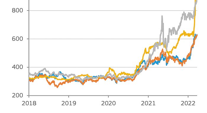 Ο δε Baltic Dry Index (BDI), ένας σύνθετος δείκτης, ο οποίος αποτυπώνει το κόστος μεταφοράς ξηρού φορτίου, ακολούθησε μια «τρελή» πορεία μέχρι τον Σεπτέμβριο του 2021 για να υποχωρήσει στη συνέχεια μέχρι τον Ιανουάριο του 2022 σε επίπεδα που, όμως, ήταν αυξημένα κατά 30% σε σχέση με τον Δεκέμβριο του 2019, ενώ στο τρίμηνο Ιανουαρίου-Μαρτίου 2022 σημείωσε νέα άνοδο 66%.