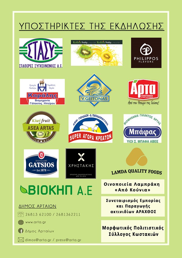 Την εκδήλωση διοργανώνει ο Δήμος Αρταίων, με τη συνδιοργάνωση της Πανηπειρωτικής Συνομοσπονδίας Ελλάδος. Θα περιλαμβάνει, μεταξύ άλλων, ενημερωτική ημερίδα με ομιλίες για την αξία των προϊόντων της Άρτας, αλλά και του κάμπου της περιοχής μας, καθώς και σε συνεργασία με τη Λέσχη Αρχιμαγείρων Ελλάδος, βραδιά γευσιγνωσίας με συνταγές που θα βασίζονται στα υλικά στα οποία είναι αφιερωμένη η Γιορτή.